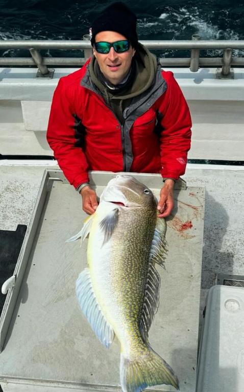 This season, Gambler is also sponsoring with Okuma reel and rod company to premier some their gear on board. They have some great equipment and we are very excited to partner with them. In the picture attachments below, check out the information about a canyon trip that they will be joining us on --and a chance to win a free canyon trip! Starting April 1st, Gambler will be running our 10AM till 3PM taug trips, fishing daily except Fridays. This is a fun, relaxing trip and a good way to clear the cobwebs. On Fridays throughout April, Gambler will run a 24 hour tilefish trip. We had some beautiful big tilefish last year. Looking forward to more of the same. Last season tilefish, we had very good trips on 6 out of 7. Even the guys that came out for the first time tile-dropping did well --as long as they paid attention and took advice from crew. Method and patience are key. On our tilefish trips, we are focused on quality over quantity. Many of our tilefish last year were in the 20-60lb range. For these trips, the captain needs to watch the wind report very carefully. Too much wind --over 20 knots-- will most likely cancel a trip. The trips are limited to 24 passengers or less. There are enough bunks for all. Food will be available on board, or you can bring your own (we have a microwave on our galley counter, which you are welcome to use). Gambler has a limited amount of new conventional or electric rod and reel available. Bring a large cooler, sleeping bag, sleeping pad and pillow. Wear boots and bring rain gear. Please don't hesitate to ask questions. I'm including some tilefish pictures from last season below.
