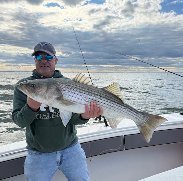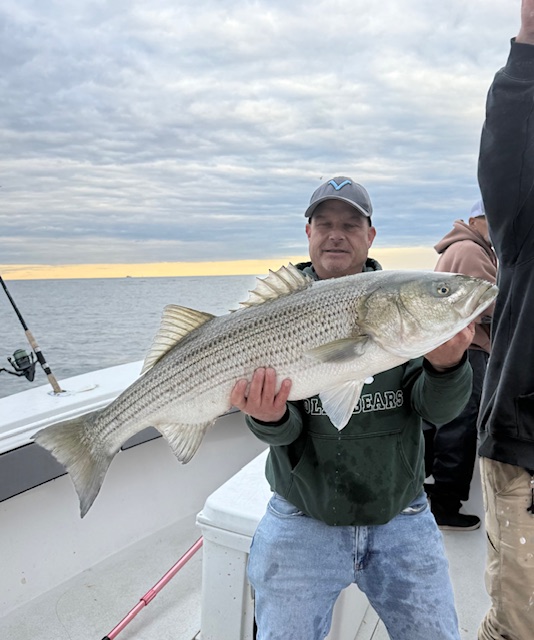 Saturday morning we had Steve and crew on board. Loaded the wells up in no time. Was just a grind in the morning with a few shots of fish. Boat traffic took its toll only boating a half dozen fish. On the afternoon we covered a ton of miles trying to avoid the boats. Had several cracks at them on live bunkers and jigs with the guys landing around 20 fish to 35#. Thanks for fishing hard guys.