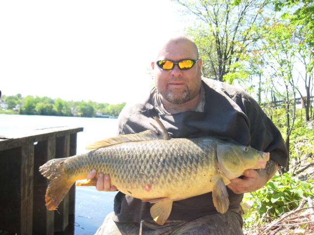 nice carp! i started targeting them last year at a local lake and got addicted after the first run off. caught one almost 40#, but most were 15-25#. i've tried passaic river fishing 4-5 times for carp but never got any. i think ill stick to my lake fishing. i saw a bunch today while i was bass fishing. one probably a little over 30. they were mostly taking in the sun's rays but the big one was 3 feet away from shore eating. pretty cool sight to see