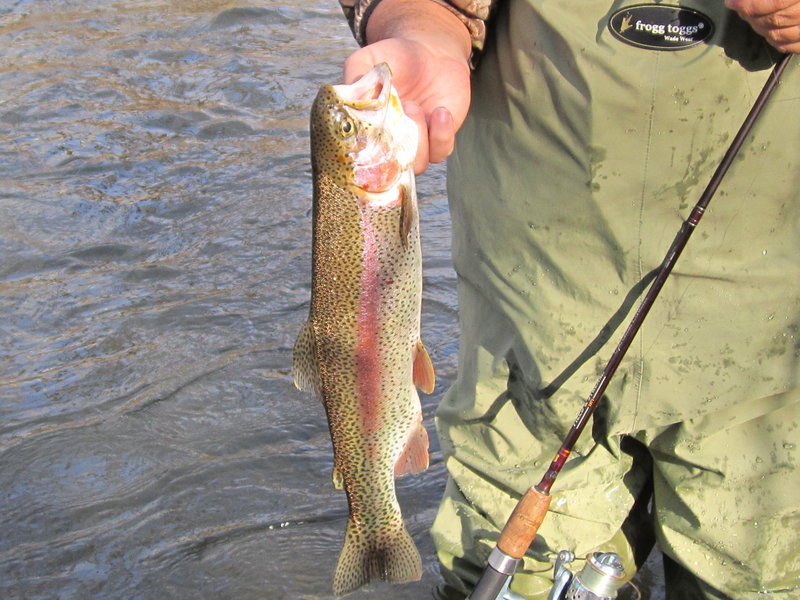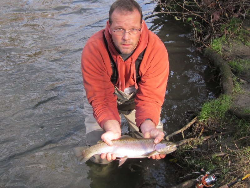 Tried some new waters with a buddy today it took awhile to figure this river out then everything started to click.Picked up 2fish apiece and dropped afew and had a few follows to our feet.Water was a little high and stained bu the fish were hungry,saw numerous fish caught all around.We found a nice seam that held the fish until some dipshit decided to get in on the action and waded right in the middle I had to take his pic