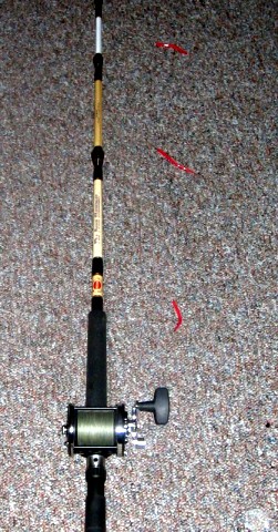Rod/Reel 7 ft 20-40lb rod loaded with 25-40lb test Matched reel/ penn Jigmaster or similar. (Rental rods are fine for this type of fishing)