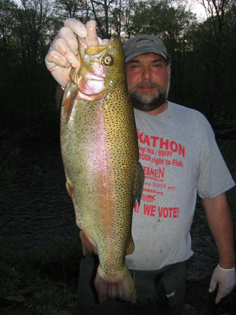 Arrived at the musky conservation area at 10am hit the bridge for 10 min and pulled up 3 browns 2 bows and a brooke. there was a hatch going on so it was a little tough there. walked 20 min up the trail past many anglers and dipped in. used black/white rapalas and small black marbou jig. absolutly set the river on fire for the 3 hours. 60 plus fish . its hard to believe me but wow what a day. mid day as im tickin my jig along the bottom i feel a THUD!!!. i set the hook and my rod doubles over and my 4lb test just screams off the reel . i fought the fish for about 10 min in that fast moving water i was fishing. i measured him against my rod and checked it when i got home 25in! rainbow. it was a great fight great fish and a great release. a nice day on the river banggin them up. does anyone the weight of a 25in trout. the bow was nice and thick beautiful colors and looks very healthy she still in the go get them fellas.