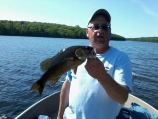Met my Friend Steve in Riverdale at 8am.1st stop Bait shop.Picked up 2.5 Doz Herring and took the short ride to Clinton.Steve launched his 16 ft Monark and off we went.As soon as we dropped our Live baits in Steve was hooked up.The 2 of us had a nice bite going for the 1st Hour but once the wind picked up it was over.The 2 of us boated 6 Smallies !