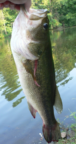hit a pond this morning to try out my frog trailer hooks that came yesterday (see my kermit post) and had to rig a worm using my old worm hooks since I didn't have my EWG's with me. sure enough this guy comes in gut hooked and bleeding. cut the line, removed the worm, and since I didn't play him long he swam right off. hope he's ok, gonna see if they make needle nose wire cutters so I can get in there and cut the hook.