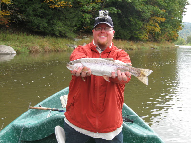 My dad and I floated with our guy on the upper Delaware on Saturday. We started at the 191 bridge on the West Branch and floated down past junction pool for about five miles. Most of the trout we caught were in one pool on the West Branch. Fishing the main stem was slow. A few short walleye, a pickerel, two jumbo fallfish, and a dink smallie. Between the three of us we landed 12 fish in 8+ hours.