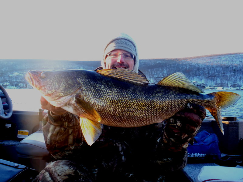 37 degree air temp, 39 degree water temp..... snow all over the place! nailed two walleyes today one real nice one I brought home for dinner....fish had 7 baby crappies in its stomach.....until next year.....Happy New Years....peace...Capt. Dave