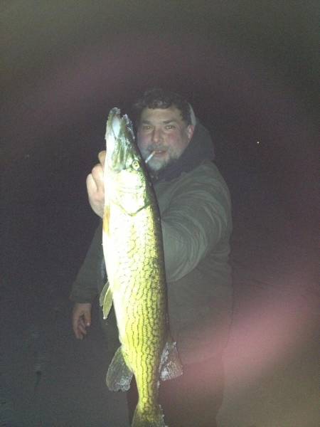 !Met up with some old friends and set up a number of tip ups, while this was being done, I made it quite clear that I thought we were wasting our time! Being my first time ice fishing, and seeing recent reports I obviously had very low expectations, but I figured it was better then sitting home again! Much to my surprise, flags started popping! our first fish was a very nice pike! I figured we got lucky and that would be it. Low and behold, a few minutes later, another flag and another pike! Hmmmmm, this ice fishing isn't so bad . after a while longer, it was my turn to grab the tip up. ran to the flag and no fish , a few more minutes and another false alarm! Well finally it happened, someone yelled flag and off I went again, this time I felt some weight and set the hook. a few minutes later had my very first fish thru the ice! another pike.By the end of the day we had eight pike and one pickerel. Dark came and it was time to pick up the lines, while retrieving one of the lines, I had the line ripped out of my hand! I yelled "fish on" and a few minutes later had a nice big pickerel! Great way to finish off a fun first day ice fishing! At the end of the day I personnaly caught one nice pike and two picks! Not bad for my fist time! Thanks to my lurker friends for "hooking me up"! Sorry about the picture quality, didn't expect to catch a thing, so I didn't bring my camera!