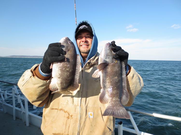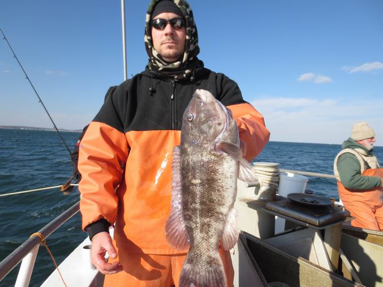 It was a little cold and bumpy this morning but the tog where biting and it ended up being a nice day. The ends of the boat did better than the middle today with limits in the bow and stern. Green and white leggers both produced. Some guys only had shorts.