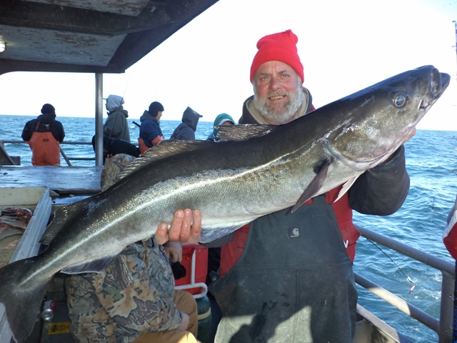 John Kizmann from Brick NJ with a 33LB Pollock and his limit of sea bass,