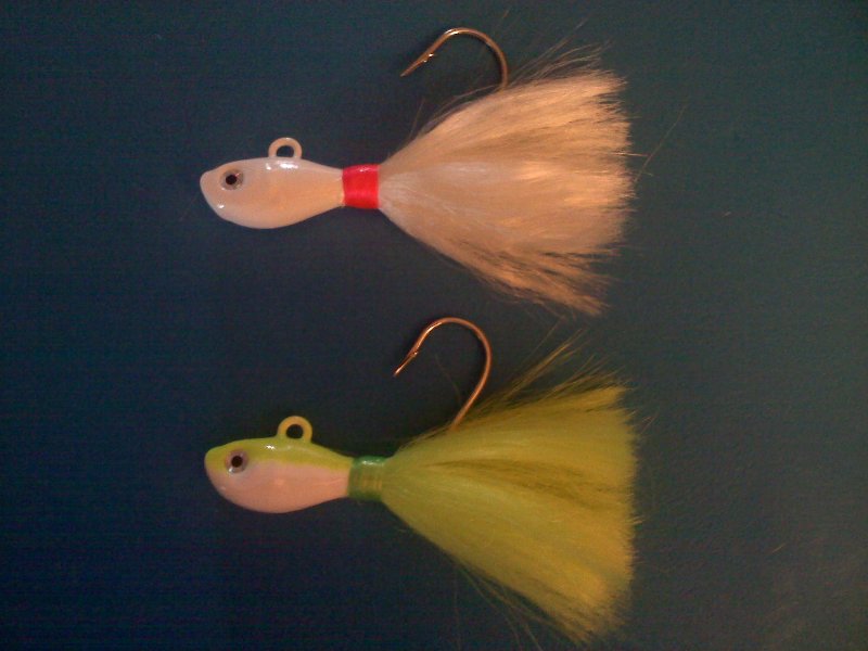 ![]() Just a quick clarification regarding the jigs, The samplers and swing hook style jigs are being made with Fishair synthetic hair unless bucktail is requested.