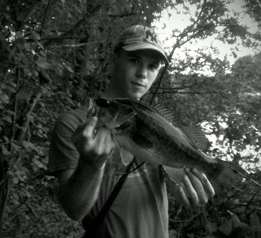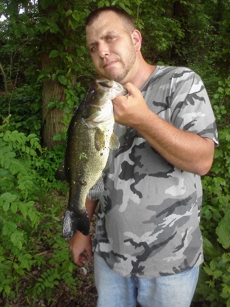 We threw senkos for a while. My friend hooked up pretty quickly on 2 dinks as we worked the shoreline "to the right". He wandered a bit ahead of me and switched to a moss mouse. It paid off nicely. See below. That was his third or fourth fish while I had ZERo. I put on a frog close by but nada. Switched back to the senko and worked the shoreline "to the left". I finally got a tug. Managed 3 dinks. As it got darker I made a cast towards some pads well off the bank about 30 ft out. As soon as the senko hit the water WHAMMO! Nice lil' toad... My buddy had 4-5 fish with a chubber and I had 4 with my chubber. My fish looked like it swallowed a billiard ball. I guess they're not all spawned out yet... Catch em' up! |
