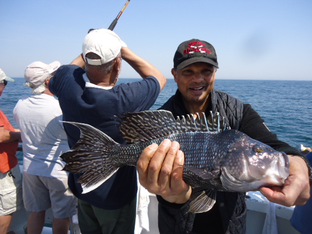 5-30-13 Another pretty day on the water today with just enough breeze to keep it comfortable,,,not back on land yet but I heard its kinda hot....We made our way out and started off where we have been finding good life on the bottom...But instead I found it kinda barren,,,not many bites...I have noticed the fish have been moving alot this week,,in one area one day and not the next so we made lots of moves today tracking em down..Some decent shots of fish here and there,,,some nice ones again as you can see in the pics below but not good like we have had the rest of the week...Not bad though either,,some guys had high hooks of a dozen keeper bass and half a dozen ling,,some only had a few,,and some ling etc...So overall not bad,,,just not as good as previous days,,,The end of the day it seemed we got into an area that had good life so we are heading back there first thing in the morning,,see ya then ;pics...