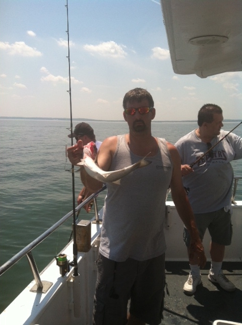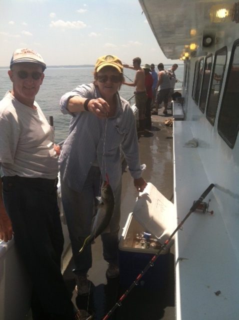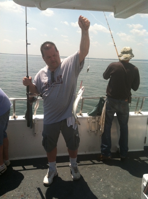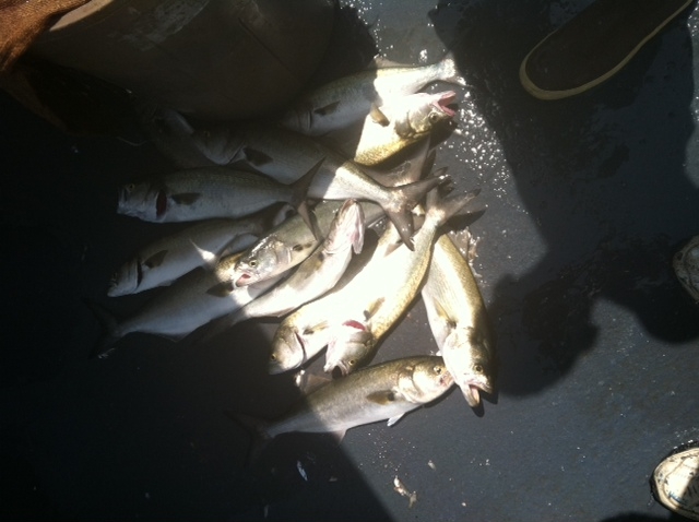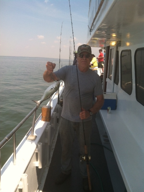 Capt Jim Elliott has the Golden Eagle out today and so far he reports that he was able to catch a Striper and lost a couple on the "live lines" and he made a move and is now catching Blues good. All the Blues have been on jigs.