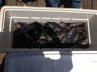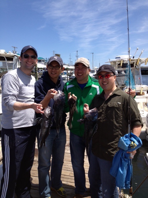 |  FISH TANK - Mon and Tues Sea Bass Report Hey gang!  Mother nature finally gave us a break on Monday and we sailed with long time customer Mr. Han, his sons and a few of their friends from church.  We broke the inlet around 5:30am and were greeted to flat calm seas and chilly temps.  Headed north, anchored up and within no time, we had a dozen nice biscuits in the boat.  A few wiggles later we were halfway to our limit and added some nice ling a dings to the cooler.  Then the current started to run hard out of the N and with the SE wind, anchoring conditions deteriorated so we decided to pull the hook and drift over a few more spots.  This proved to be very effective.  We rounded out the day with a nice catch of sea bass, ling and some tog that were released.  The guys went home with big bags of fillets and smiles from ear to ear. Today, Capt Tommy called me and reported lights out fishing. The 5 man crew bagged their limit of sea bass up to 5lbs by 9:30am and were back at the dock just in time to beat the rain. The sea bass are here and have their feed bags on so now is the time to get in on some this great bottom fishing. It's also a great opportunity to introduce some young ones to the sport that we all know and love. Til next time...be well everyone! ~Capt. Kevin Hutnik