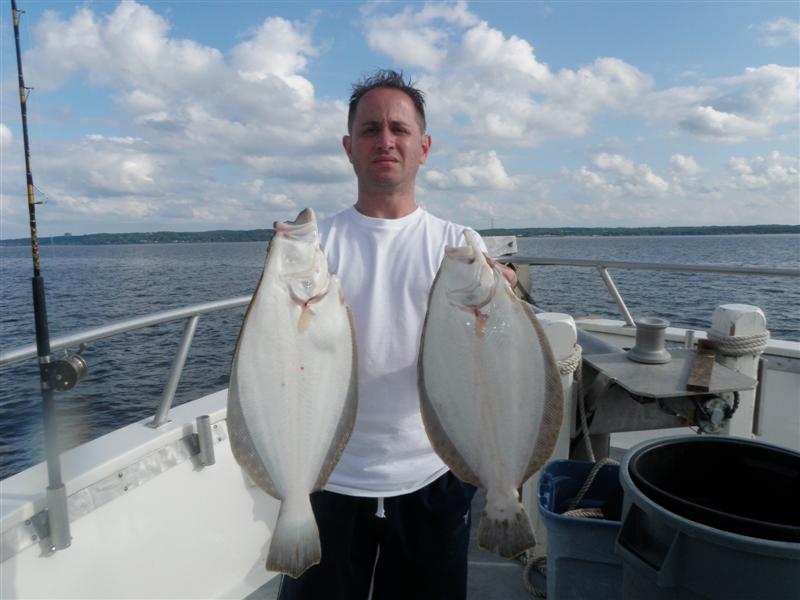 We had a light crowd for what turned out to be a beautiful day with one little sprinkle of rain in the afternoon. The fluking was decent on both trips in spite of all the rain yesterday. Dan had the AM pool with a nice 4 lb fish. I had a chance to wet my line and ended up with 4 fish to a fat 5 lb fish. Jake limited...again. The kid has got the hot hand lately.