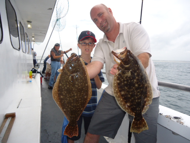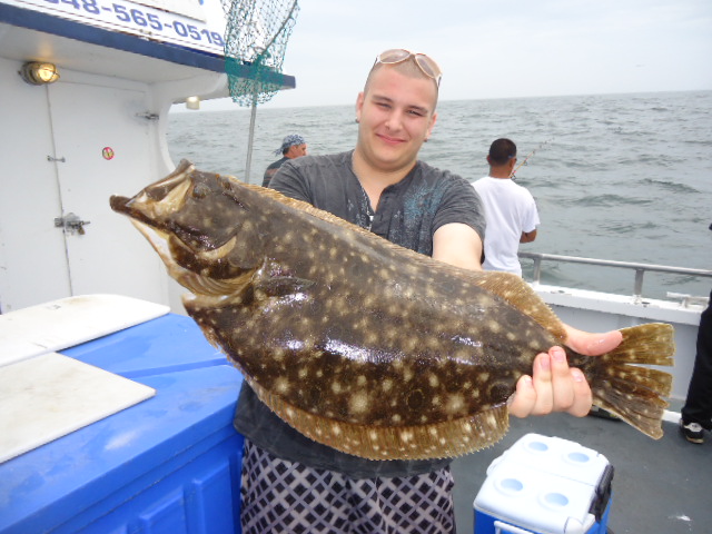 7-2-13 Pretty much the same conditions as the previous days,,,,the wind today though never got to gusty.Just stayed around 10-12 mph which gave us a nice drift...Rain never developed and the sun actually came out at the end of the day.Fishing got better to..After trying a couple of areas that were no good we got dialed in started catching some quality fluke in the 2-4lb.range.Not great numbers but for a small crowd we started getting between 2-4 keepers each drift...Some short fish,,some nice sea bass..We didnt see all the small sea bass like we had yesterday..Overall a big improvement from yesterday..Check out some of the nice fish from today..Tomorrow we are going right back out and getting into them again!!Are you in??See ya in the morning.. Pink....noticed the pink stuff has been working for some reason better than the green this week...Draggin baits did best again today and all the fish are in the hard bottom.Definate quality fish where we area fishing...I think we get better condtiions we will even see more quanity....