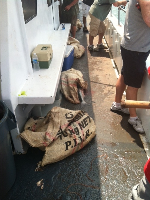 Great day today! Finally got to pull against a blue that pulled back and boy oh boy, those were some mean and nasty big 'uns today living up to their well earned pound for pound rep. Guess I won't be taking them for granted anymore. Great job by Cap't Jimmy having the patience to wait out the initial lull when we first anchored. He was also the one that scouted out this area over the weekend enabling us to break the great bluefish drought of '13.