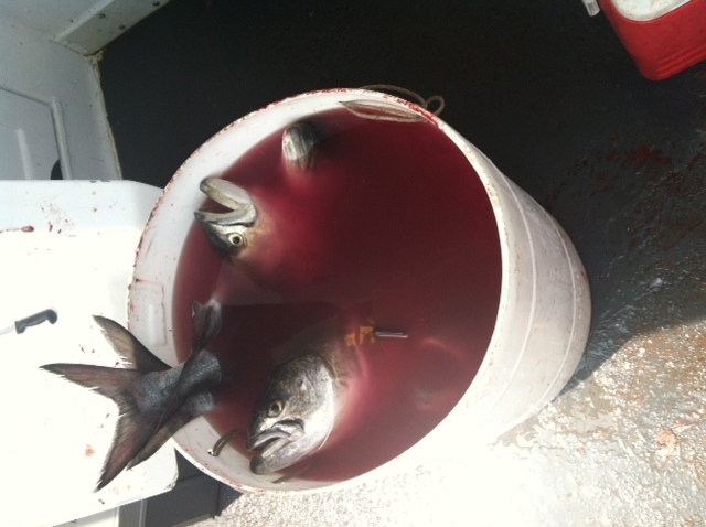 Well like the title says a Very Good Day on the OffShore BlueFish grounds took a little to get them going but most of the time there we held 3 or better on at a time with as many as 6 on some times. This is a GAZZILION % improvement from what it has been. High hook of limit and low hook of 3 or 4 . Very Good Day check out the pics. Ill be back at it in the morning