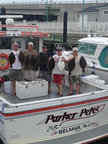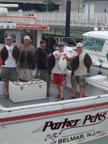 Today we had the DD club fishing on Parker Pete. Most of whom have caught their DD fluke on Parker Pete. The bite today was a consistent pick. Real nice fish were coming over the rail . Most keepers between 4-5 lb w Tom catching the pool, a nice 6lber. some limits were had some almost double.. and some with 2 or 3. Great day once again on our beautiful Atlantic Ocean . Thnx again guys