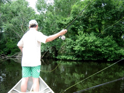 We hit a few ponds and lakes in the Monmouth County area and had good results on the deer hair frogs and bugs we tied. We had a little rain in the am so we took a break and had a nice breakfast together at Perkins. We fished all day. Leif