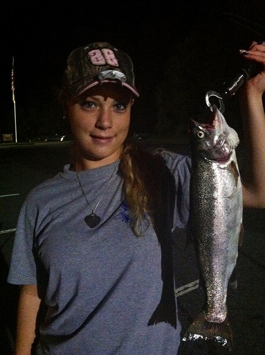 We didn't realize till after the fact that the release's were set a little tight but this fish popped it no problem and was thumping pretty good! With high expectations of a beauty Jimmy went to clear the other rod and POP! she was GONE!!! OH WELL that's fishing. We kept at it and ended up with a rainbow and a brown for the day. Always Great FISHING with Jimmy as usual. Never a dull moment and a ton of laughs when we get together! We wrapped it up and I was home by 6:30pm. Had a bite to eat , a power nap, rigged to boat and my daughter and I had our baits in the water by 10:30pm First spot produced zilch! So after giving it about 45 min we made the move further back and dropped anchors again. This time we found them and ended up with 15 Rainbows 3 rock bass and 2 bluegills. We wrapped it up and was home by 4:30am. Big difference between day and night. Here's a couple pics as well! Two for the griil !!!!! All fish released except for the two we kept. Last edited by GetANet; 07-15-2013 at 09:13 PM.. |