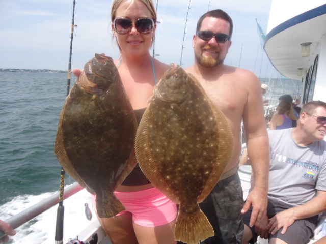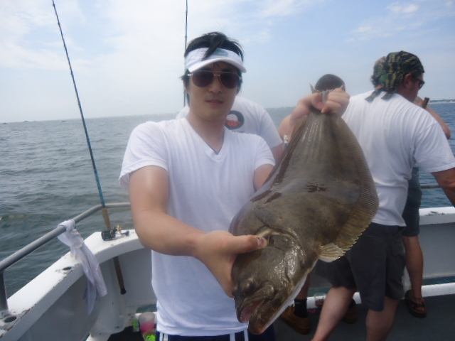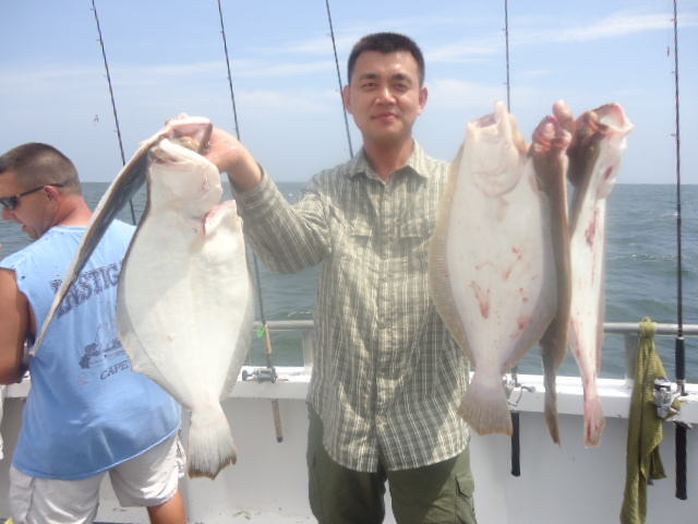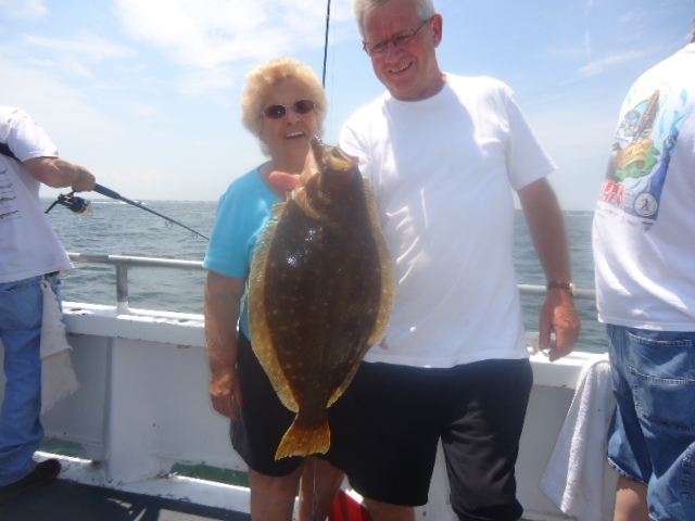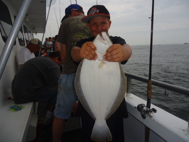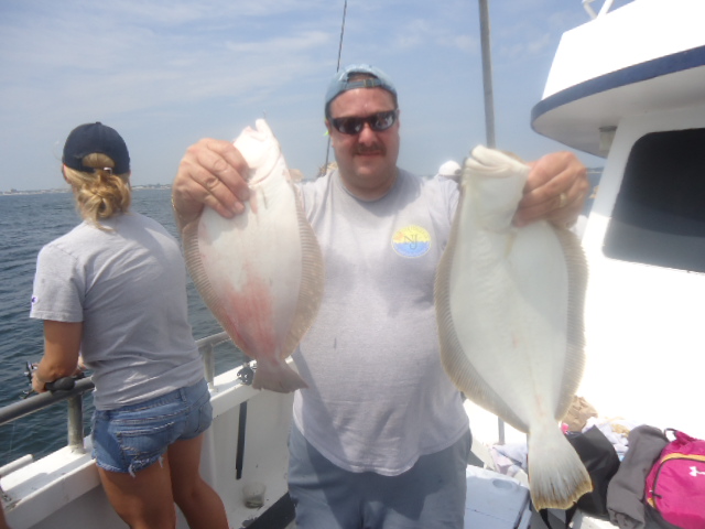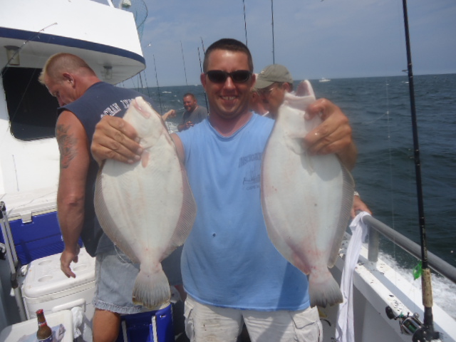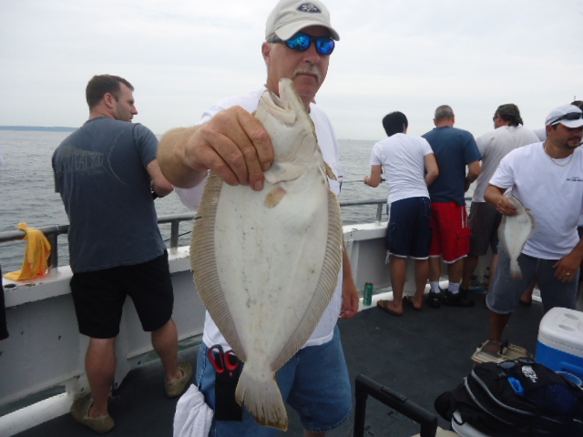 7-21-13 Flat calm,,water 75 degrees..Nice cloudy,warm day,,Fish were coming to the net as soon as we stopped today and it kept going all day long..For a nice size crowd that came out today I though we had very good fishing..We had high hooks with limits of fluke plus some bonus fish..We had people with limits,,we had some with 4,3,2 fluke a piece..Some nice sea bass spiced it up a bit...Some did only catch some shorts but scattered around the boat overall a very impressive catch of quality fluke in the 2-7lb.range..Plenty of short fish kept us busy as well..A very quick drift at the end of the day made it a little tougher but even still we kept catching the fish.Would have been even better if the drift was a bit slower but still we caught...I look forward to tomorrow already!!See ya in the morning..Check out some of the pics..