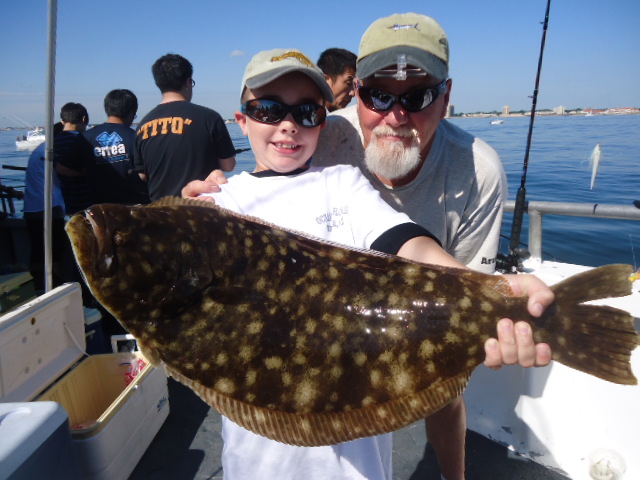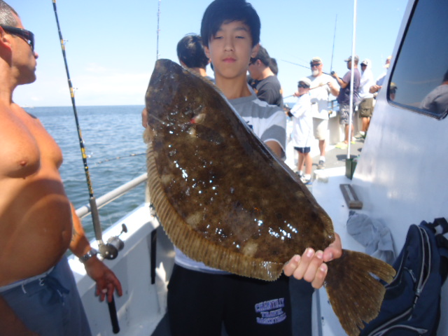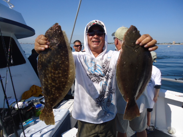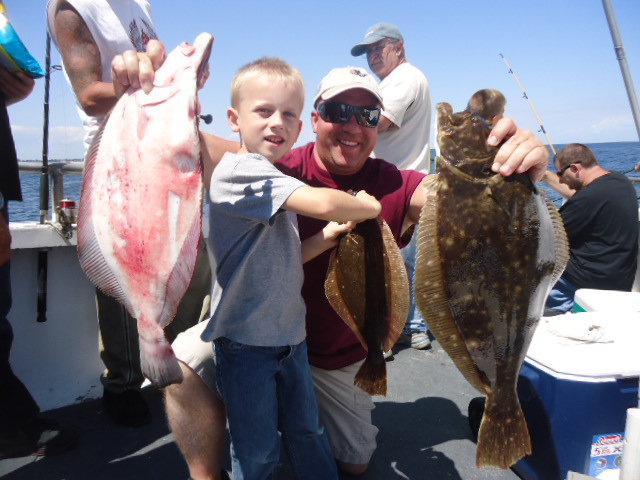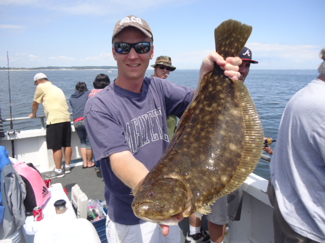 8-6-13 The ocean was like a mirror this morning..Wow was it flat calm..So was our drift to start..Very slow drift,,very slow fishing.Just picked a few nice fish here and there,,not very good....Eventually we started covering some ground and some real quality fluke came up..Scattered around the boat the nets were pretty busy the second half of the day..Fish in the 3-6lb range were popping up and surprising I would say most of them were caught dragging baits..High hook had a limit of fluke,,low hooks had just shorts..Check out some of these nice fish from today..!!Tomorrow looks beautiful!!See ya for coffee!!