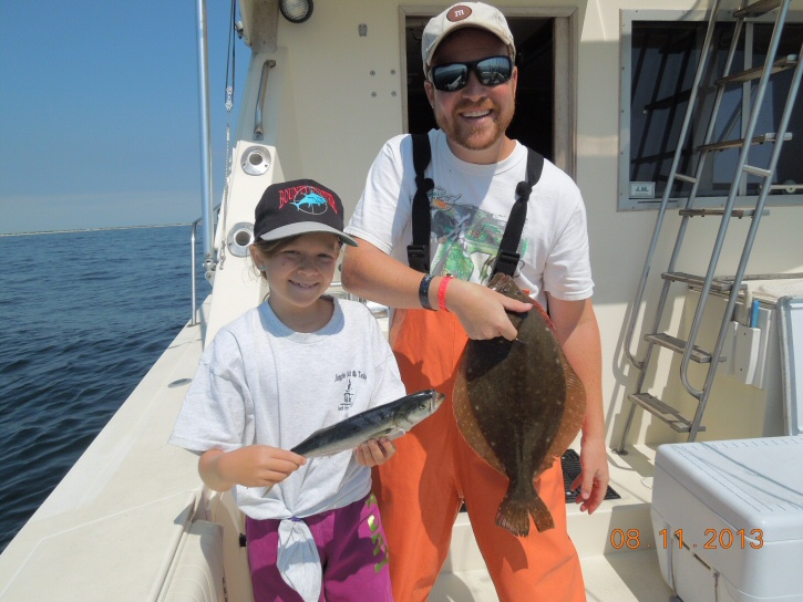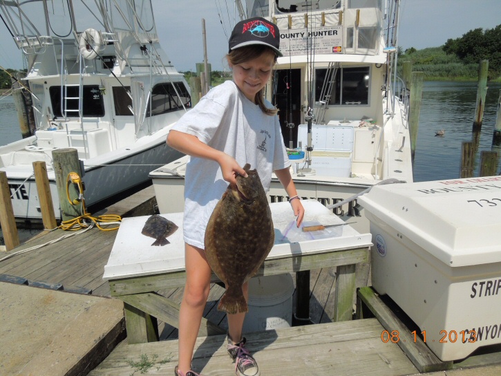 We had Don Beshada and his daughter Emily out for a few hours today. Emily has done well catching her first Striper, Fluke, Seabass & Tog on the Bounty Hunter so we wanted to see how she would do on her first ever Bluefish effort. It's obvious the youngster has the moves as she jigged a couple of dozen Blues with no effort. After an hour of C & R we headed inshore to try for some Fluke. It was slow fishing but Don & Emily managed 2 Keepers and several shorts. By 11AM we called it a day and headed for home to enjoy the Cup Cakes Emily baked the night before.. It's always a fun day when we have Don & Emily on board. Their next trip is scheduled for Friday.