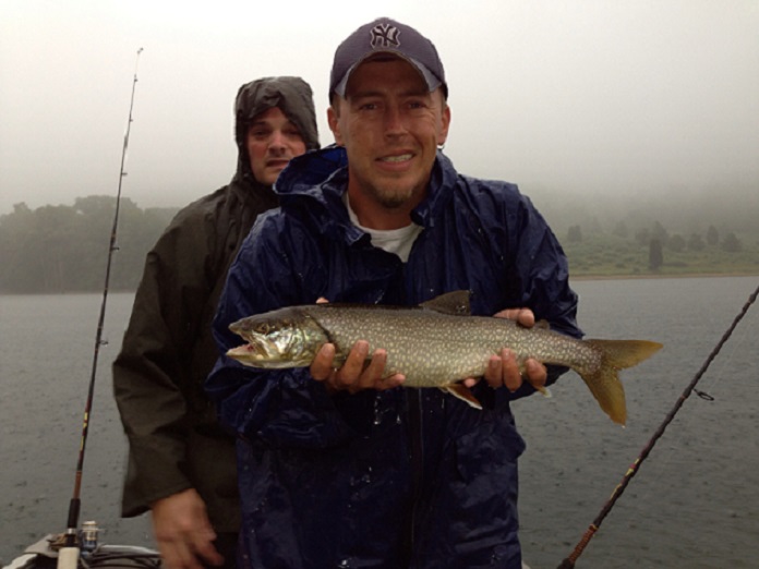 The fish definitely cooperated! Caught fish pretty consistently the whole time..except for when the weather cleared lol. Not really sure how many we landed but it was def one of our best days this year. The early morning started out with the browns goin off! Most were in the 15" range, the one in the pic is the biggest @ solid 18" but really fat. All were released never leaving the net. Then the lakers took over! Caught about 5 of them all around 22" and they seemed to hit right when the weather was at its worst. They liked the metal. Now for the best part of the day, as the weather calmed a bit random packs of smallies invaded! We had a few multiple fish hook ups with really solid fish. Biggest smallie was a 22" monster! Oh and we caught a catfish trolling..wierd. Gotta love the rain!!!!!!!!!!!