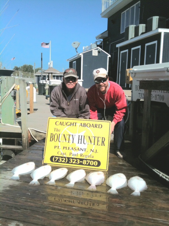 Capt. Paul had Don Beshada back on the Bounty Hunter for a day of Fluke fishing. We knew going in that it was going to be a slow day after yesterday's NE weather. As we suspected the ocean offshore had a rough residual roll in it with a brisk NW wind. Our first few drifts approached 2 Knots and it was not until the morning wind subsided that we started to catch a few fish. Shorts far outnumbered keepers but Don managed to put 7 nice fish in the boat while releasing over 25 shorts. Always fun to fish with Don. He and his daughter Emily will be back for Seabass Opening Day.
