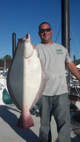Left the barn late morning to do some solo C and R on tog in a nice light west wind. Slow start with a couple nice sea bass, a few striped ones, and as the tide chanced so did the wind. I had to reset twice as I kept swinging off the piece. Getting frustrated I decided to see what might by hanging around the wreck, put on a bucktail, casted away from the boat, jigged twice, and I got hammered. Thinking it was another striper, as he made several good runs. Got the fish to the top and was surprised to see a doormat. Of course the net wasn't within reach, but I managed to net this monster. It was 14lbs on the boga, but Atlantic Bait and Tackle's official scale had hi at 13.43lbs. My PB beating a 12.5l ber. Couldn't begin to explain the thoughts going through my head to keep it or release it. I decided to get it skin mounted as they look the best. Also I have released my share of big fish. Wound up with 8 keeper tog to 5lbs, which all where released but one, and the mat. Good day in my book! Thanks for the pic Gerry.
