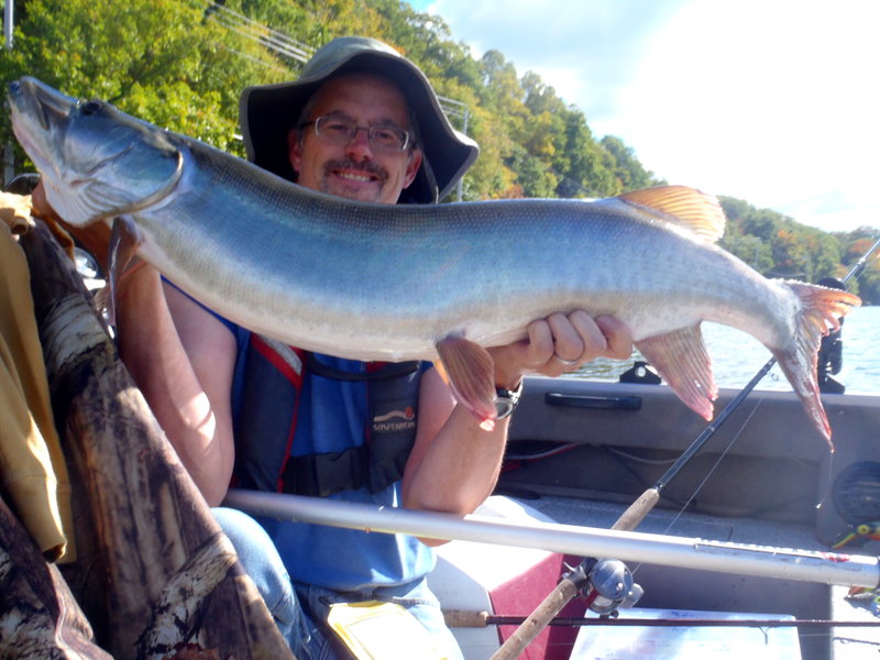 beautiful slick colors on that musky capt dave, nothing like some propwash bucktails to pull some toothies out! We had a nice 40's class muskie sunday morning on LH, he was messing w a school of white perch and decided to get a snack on my buddys herring pinned to the bottom, C+R'd w no P unfortunately, net wasnt big enough LOL