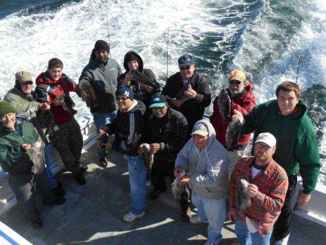 Hey guys, Rob here. Hey we had a great trip today! Lots of porgies,nice Sea Bass that were released and BLACKFISH! I too can't wait for Nov. 1 and Nov. 16th.. we released many keeper Sea Bass and everyone on the boat had their Blackfish for the day! Lots of action all day long and everyone went home with some real good eats! Lit up everyday at 5:30AM! COME GET SOME!