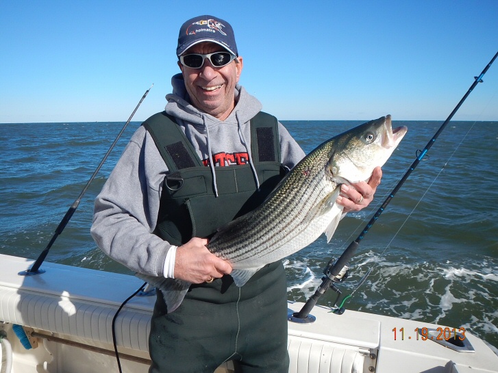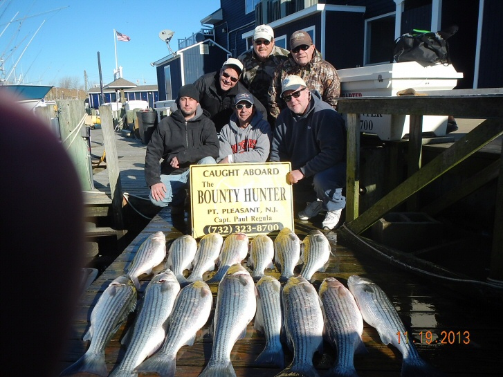 Capt. Paul ran an Open Boat Striper trip today. On board we had Mark, Ralph, Bob, Charlie, Bill and newcomer to the Bounty Hunter, Killian. We made our way down to the grounds and found acres of working birds. Paul read plenty of bait but very few Bass. We started the day Jigging but the best we could do were 5 misses. The Bass were not interested in the Jigs. Switching over to Trolling proved to be more productive as the guy's slowly put together a Limit catch of 12 nice Bass plus 3 Bonus fish. Another 8 short Bass were released. Overall it was good fishing, not hectic but good enough for everyone to get a few turns on the Rods. Another good day with a great bunch of guys.