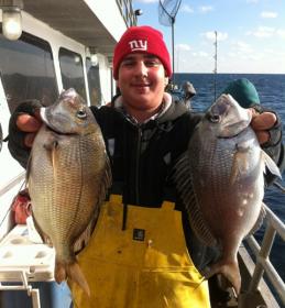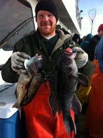 Offshore wreck fishing was good again today. Some of the wrecks had giant sea bass and jumbo porgies and some had more porgies on them. There were many limits of both Sea Bass and Porgies. It looks good for our January trips for Jumbo Porgies as there are more migrating to the wrecks every day. Certain wrecks are holding many more porgies than sea bass which will work out well as Sea Bass will be closed. We should see more cod and Pollock move in. If we do not then we will fish the offshore wrecks until everyone catches their limit of porgies and then move to the mid-range wrecks to try for cod, Pollock, and ling. Today’s pool winners were: Bob Patschke from Clarksville MD with a 7.75LB Sea Bass, Earl Tarpley rom Washington DC with a 7.5LB Sea Bass. We are scheduled to sail offshore every Saturday in January and February at 1AM. We will fish offshore wrecks for Jumbo Porgies, cod and Pollock. During January & February Jumbo Porgies are open. Based on what we see, and are catching right now, fishing will be good. More cod, Pollock , and ling should move in too. For further information on our Offshore wreck trips go to www.bigjamaica.com or call 732-528-5014.