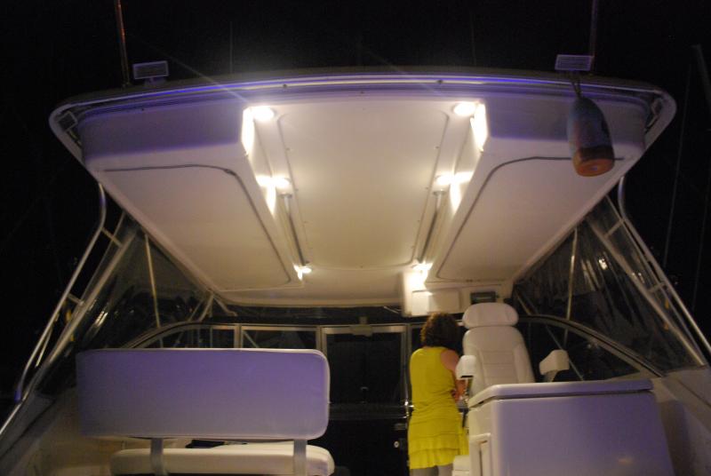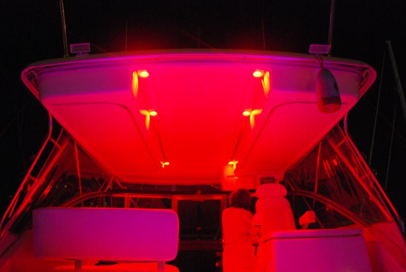 My over head courtesy light are tri colored and I find that I use the blue most of the time and hardly ever use the red as I can see the water much better with the blue and it's softer on the eyes.