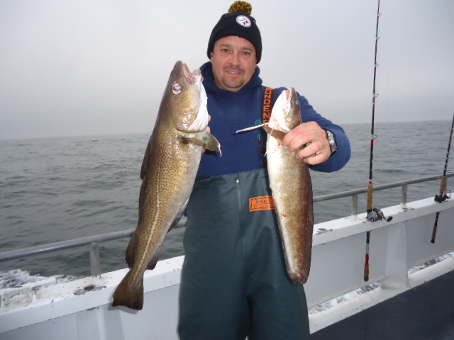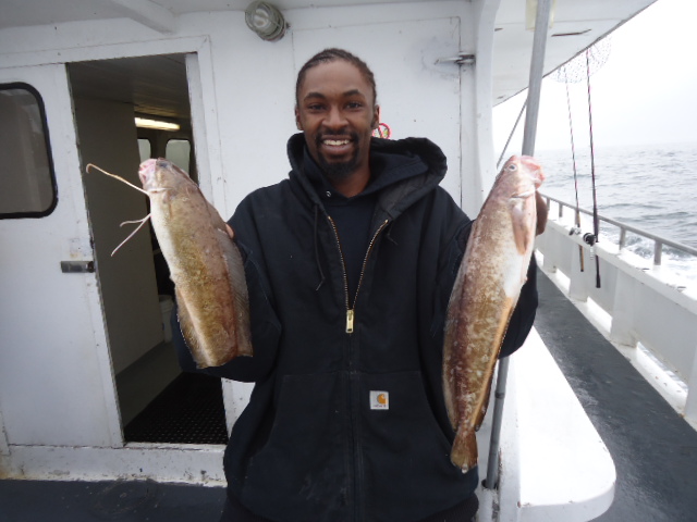 2-19-14 We made it out today with only a handful of guys,,,the ocean was decent..the wind never came up like they said,,actually it dropped out and I had a tough time sitting on the anchors..Fishing was picky again,,,we caught some ling,,nothing great but we did pick at some,,they were nicer size which was good at least....Some spots held some fish and some did not..the dogfish were pretty aggressive today so I think that was no help..Keeper Codfish took the pool,,no blackfish today but I was not in the area that has been holding them..I think tomorrow we are gonna run even further off and look for some better life with those and the Cods and Ling...So in the end we caught some fish,,could have been alot better but I guess it could have been worse to...pics..Tomorrow looks real nice,,see ya in the am...