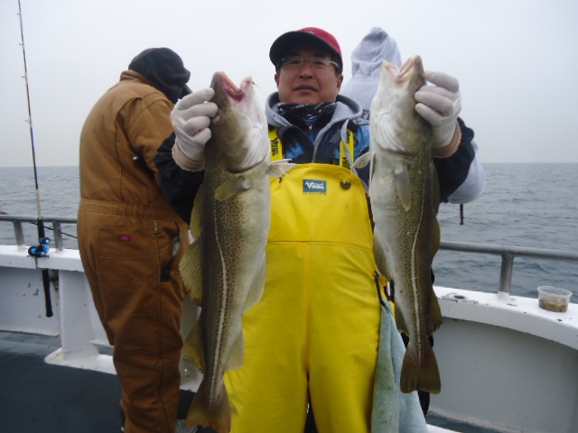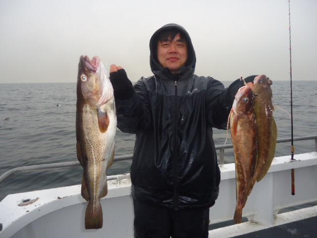 3-2-14 Another flat calm day with very nice fishing conditions...Water is still hovering around 35 degrees..We picked away again today at some Codfish and some nice Ling.Few guys had two keeper Cods,,,few one,,,high hook had half a dozen ling,,,so nothing great but we did some manuvering and scraped away at putting fish in the box for dinner.. Some of the spots actually had some decent life on em..All deeper spots in the 180-200ft.range...Check out some pics,,,no fishing the next few days due to the storm..I will let you know here the next nice day....