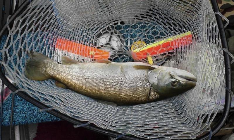 Shortly after I bag a 12-13" bronze... Then it slowed... And it slowed for a while. We prob went 90 min w/o a strike. We decide to switch it up and cover some ground via the troll. Dale begins deploying the planers. Not more than 2 mins into the first board going out--whammo! Then it dropped... Womp womp womp... Reload, deploy, troll on...