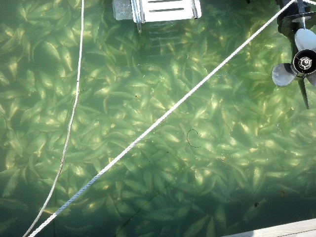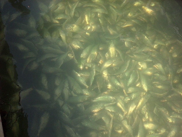 Took this in the am around 9:50am. All up and down the docks like this. Didn't see any other fish besides bunker.