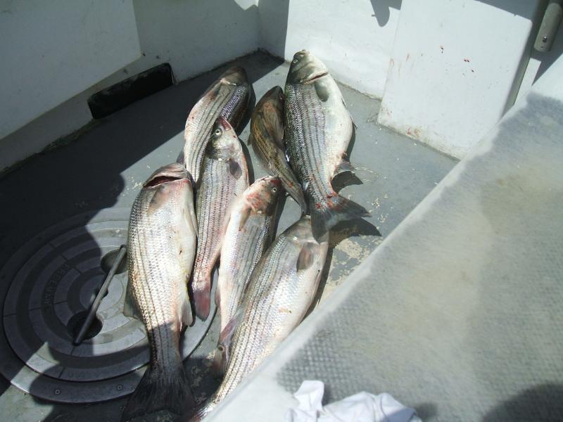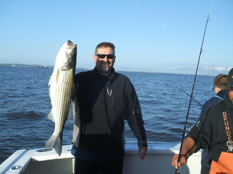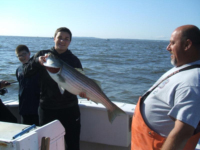 It was a near limit of bass today for anglers steve,jonathon,tom sr and thomas. We left the dock under cloudy skies and went to the grounds. The trip started off slow with a couple of short fish caught and released, as the day went on the fishing was better. Tom sr landed a near 30 lb striper while thomas landed a surprise fish a 25 lb black drum. The group fished hard the entire day a total of 7 quality keepers were taken, the weather and water were great a good time was had by all.