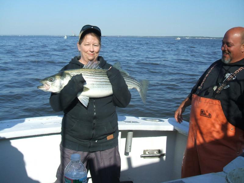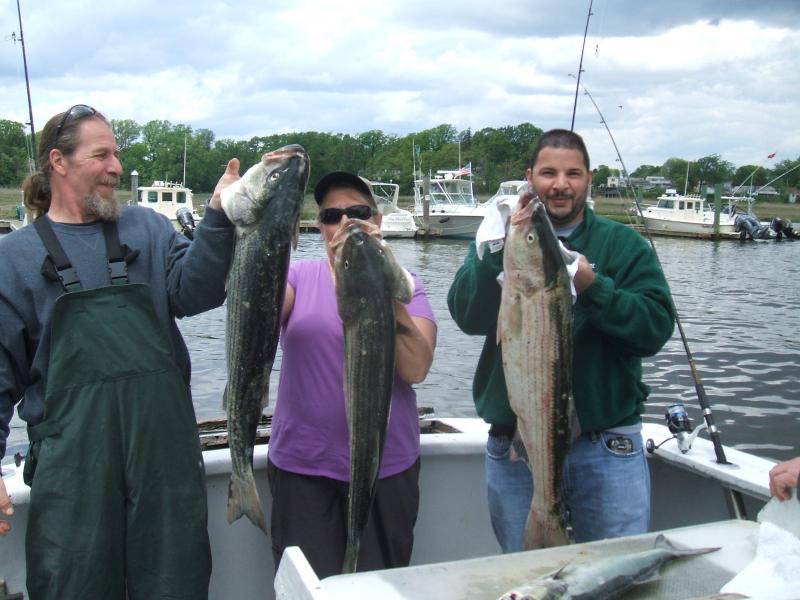 It was slow action today for anglers bob,george,john,laura,rick and george, we set up on the grounds and not much was happening, as the day went on the anglers had a pick of fish including the first blue fish of the season, george slammed the first keeper bass a nice fish at 19 lbs, laura than followed up with her first ever striper another nice fish at 22 lbs, than rick joined in and landed his keeper at 21 lbs. A couple of short bass were caught and released. Inspite of the lack of activity the group fished hard and enjoyed there day on the water.