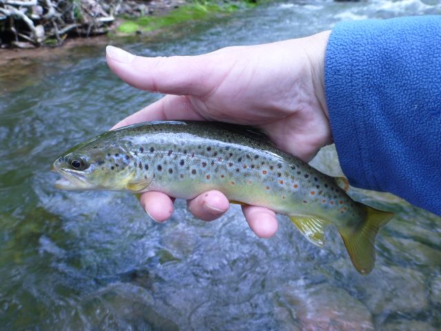 Caught this unusual and rare brook-brown-rainbow hybrid yesterday on a WTS: