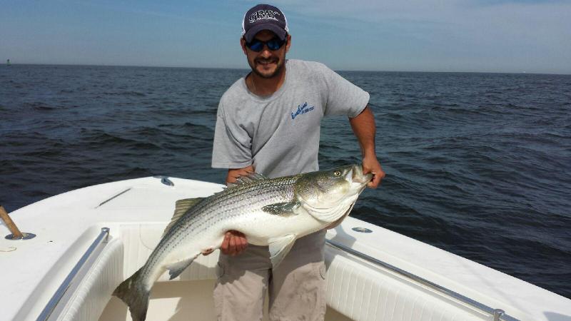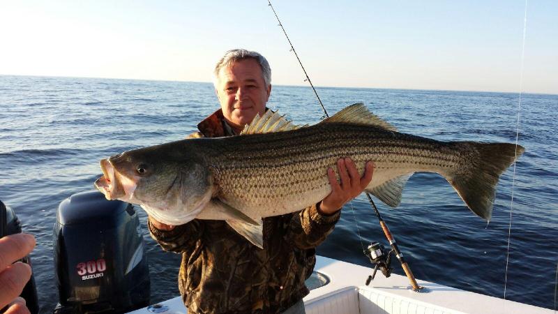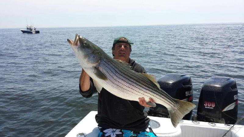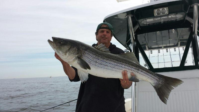 The morning trip we saw beautiful fish in the 25 - 35 lb. class, many misses, Stripers just exploding on the baits, but not commiting