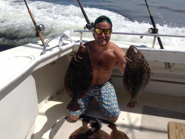 Today aboard the 40' Downeaster, with a big crowd, we sailed an OPEN BOAT Fluke trip. Fishing was fair today, but the guys worked hard and John managed to catch his limit to 5 1/2 lbs. Check our new sailing schedules for both boats, daily trips, charters and open boat. BOOK NOW !