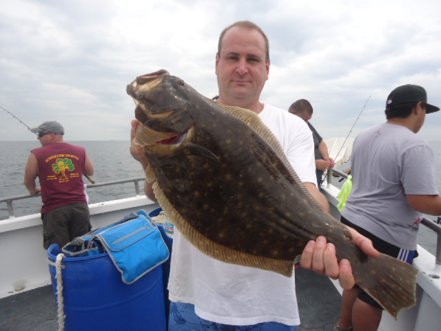7-24-14 Nice out here again today,,flat calm but did we have some current to deal with..It was ripping down the beach...Made it a bit tough but we did catch fish today,,just alot of the fish were throwbacks....Could have used a better ratio of keepers to shorts but it was action...We did have a pool fish about 6-7lbs..and a few others 3-4 lbs..Other scattered keepers and some nice sea bass....Just not enough to go around....Still a nice day,,,see ya tomorrow!!Pics..