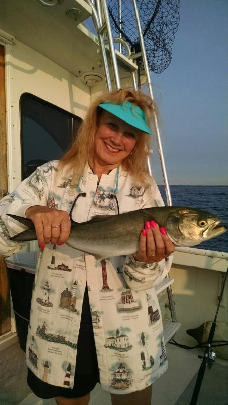 Today aboard the 40' Down Deep we ran an Open Boat Fluke trip. Received a call from a group of our regulars who unfortunately cancelled last minute due to car issues. With only two fares on the boat, we sent the boat out. We are not in the business of disappointment as Catherine and Greg were really looking forward to this trip for a few days. We fished some local haunts and proceeded to catch some shorts with keepers mixed in. Bluefish were also around and Catherine made short work decking the demons. At days end they had a handful keepers, Bluefish and a beautiful day on the water. We thank you both for sailing with us.
