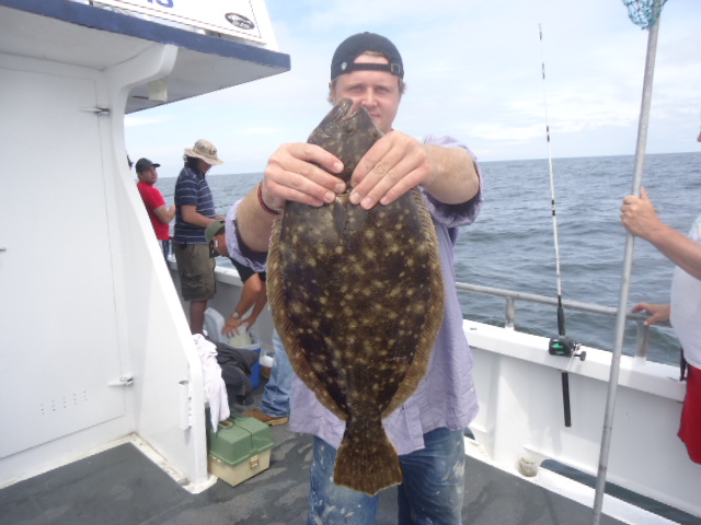 8-3-14 We had a bit of a swell to deal with today after that gusty Ne wind from yesterday..That along with a ripping current kept us moving along at a quick pace...To fast I thought,,,alot of short bites we were getting due to the quick drift...Made the fishing kinda dull I thought,,,few keepers here and there,,,lots of dull periods or just shorts coming up..Few nice sea bass here and there,,,pool fish had some shoulders in this pic below...A real fat fish maybe 6lbs....A few other nice ones as well...Anyway,,,it looks like real nice conditions for the rest of the week with light winds....See ya in the morning...!!!!@@@@Coffee....@@