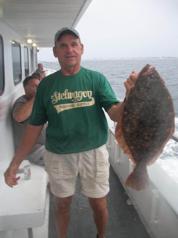 Despite the weather report we had a fairly decent day of fluke fishing, Jerry Witter from Highstown N.J. had a good day by winning the $$$ pool with a 5 lb. 2 oz fluke plus he had four other keepers. Nick Tucci from Highstown N.J and his group had six keepers up to 3 1/2 lbs, Bobby blackfish, pulled over the rail a 6 1/2 lb. fluke ,Jimmy the watchman had some fluke and sea bass, as usual we had action around the rail from the short fluke. The up coming week is looking like decent fishing weather. We leave at 7:30 am, we provide the bait and have rod rentals.