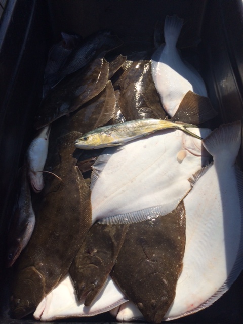 When the wind turned S, the bite stopped. Finished up with 16 nice quality keepers to 6# -- we had several 3-5#ers in the box as well as 3 nice fish right at 6#. Also had 3 seabass, 2 ling, and a chicken sized mahi.